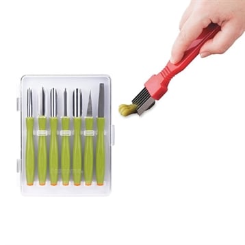 Le set à sculpter Presto Carving est composé de 6 ustensiles aux lames en inox plus ou moins précises pour creuser, couper et sculpter vos légumes et fruits crus.